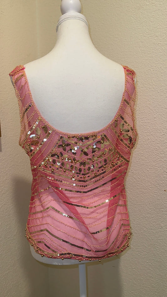 Pink and Gold Sequin Top Sheer Embellished Top Boho Sequin Top